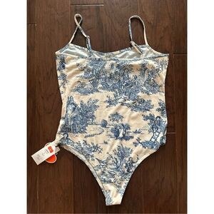 Cider Blue and White Villagers Bodysuit size large new with tags