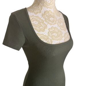 Cider Body Suit Rib Knit Square Neck Blouse Top T Shirt Green S NWOT