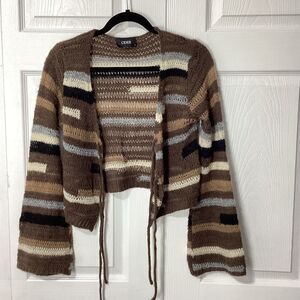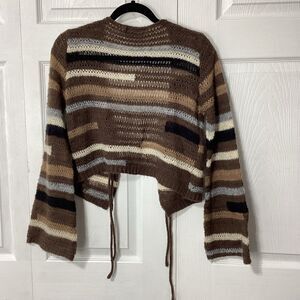 Cider Brand Knit Front Tie Wrap Sweater Patchwork Crochet Y2k Crop Sweater Small