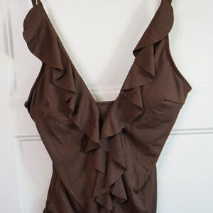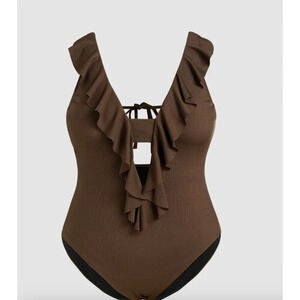 Cider Brown WITH RUFFLE V-Neck One Piece Swimsuit 1X NWOT