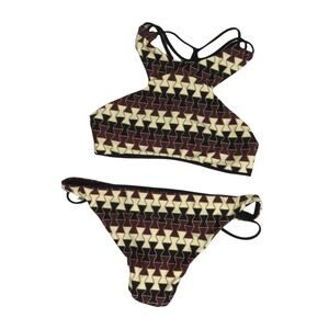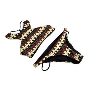 Cider High Neck Halter Bikini. Maroon, Cream, and Black Geometric Design. Strappy Cute Bikini. Small. Excellent Condition