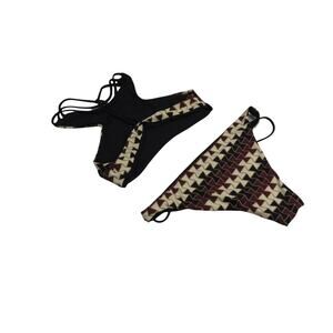 Cider Burgundy Black & Cream Geometric Halter Top Bikini Small