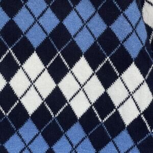 Pattern/Design: Classic argyle knit in navy blue, light blue, and white