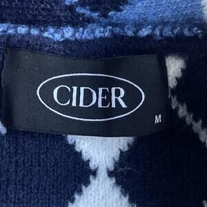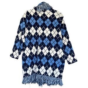 Cider Cardigan Sweater Womens Medium Blue White Argyle Fringe Open Front Duster
