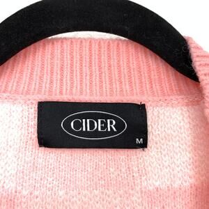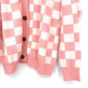Cider Cardigan Sweater Womens Size Medium Pink White Checkerboard V-Neck