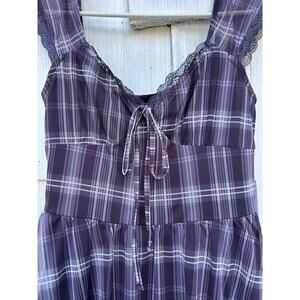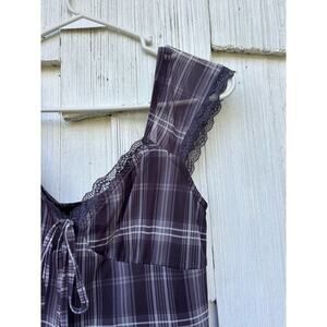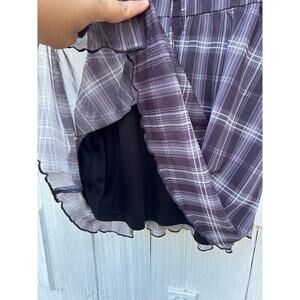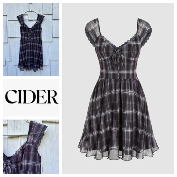 Cider Check V-Neck Knotted Lettuce Trim Mini Dress Black Short Sleeves Size XS