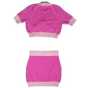 Cider Coord Set Knit Cropped V-Neck Cardigan Mini Skirt Womens Sz Small Pink NWT