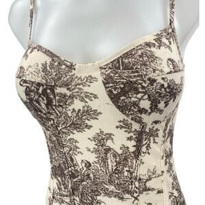 Cider Cream Brown Sleeveless Cami Camisole Tank Corset Bustier Bodysuit Top S/M