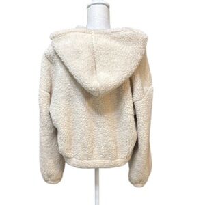 Cider Cream Fleece Hoodie with Crochet Detailing 3 button neck closure L