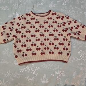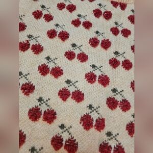 Chic knit crop top with cherry pattern. Features short sleeves and ribbed edges. Perfect for casual outings. size large euc cozy ✨️ great for fall