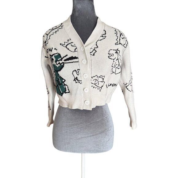 Cider Dinosaur-Print Cropped Cardigan Sweater With Button Front - Women’s Size S