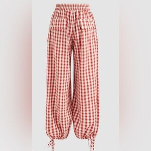Red checkered pants with adjustable draw strings on the bottom of the pant! Super cute and versatile. Size M. New with tags! Currently retailing for $23.