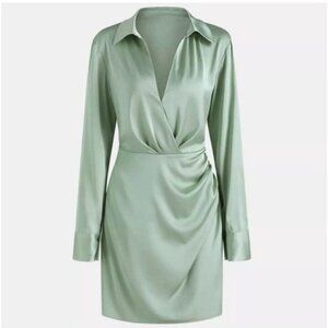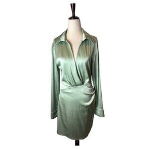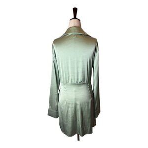 Cider Dress Women Small Mint Green Satin Dirty Martini Long Sleeve Mini Party