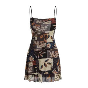 Cider Floral Leaf Print Mesh Ruffle Dark Fairy Grunge Whimisgoth Patchwork Y2K Mini Dress