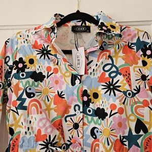 Cider Graffiti Print Button-Up Mini Shirt Dress Junior's Size XS