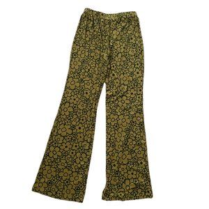 Cider Green Flower Velvet Wide-Leg Flare Pants Funky Retro 70s Loungewear Large