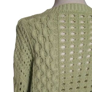 Cider Green Open Cable Knit Cropped Front Long Sleeve Sweater Size Large