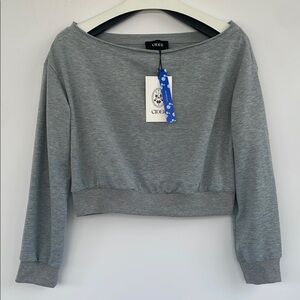 Cider Grey Asymmetrical Neck Long Sleeve Crop Top Sweater Small