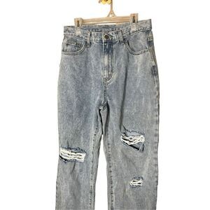 Cider High Rise Loose Straight Leg Distressed Jeans. Great condition. Brand and size tag have been cut out see measurements for size