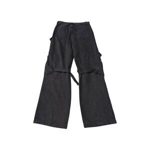 Cider High Waist Cargo Jeans Denim Pants Black High Rise Utility Wide Leg Flare