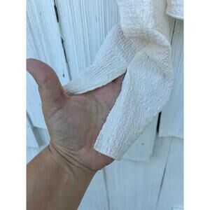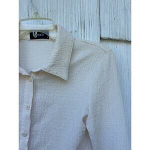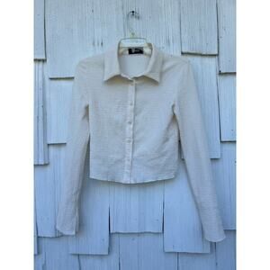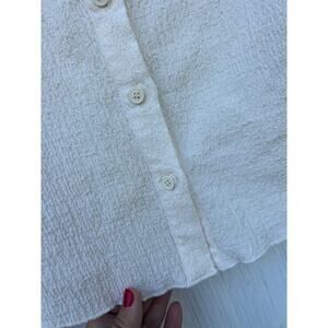 Cider Ivory Textured Solid Long Bell Sleeve Crop Button Shirt Small