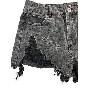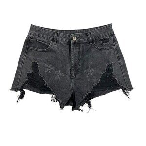 Cider Jean Shorts Cowgirl Jorts Size L High Rise Black Distressed Stars