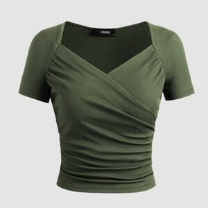 Color: Olive Green Chic olive green bodysuit with a flattering neckline. Perfect for versatile styling.