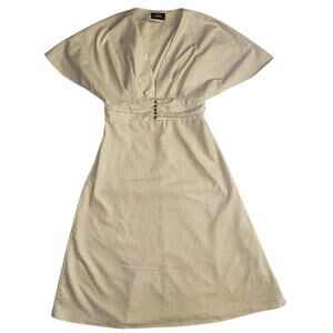 Cider Linen Blend V-Neck Solid Ruffle Ruched Midi Dress Women's 10
