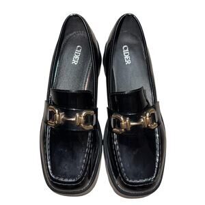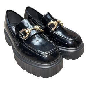 Cider Loafer Shoes Womens Size 38 Platform Chunky Gold Chain Slip On Patent