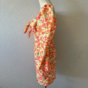 Cider Orange Floral Long Puff Sleeve Tie Front Mini Dress Resort Vacation Size S
