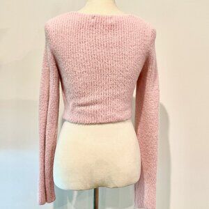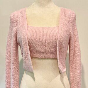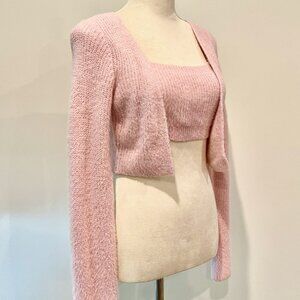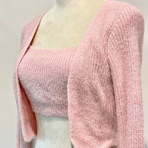 Cider Pink Fuzzy Soft Long Sleeve Crop Cardigan with built in Cami Sweater Top