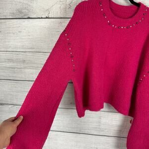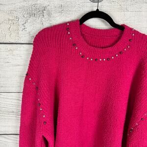 Cider Plus Size Hot Pink Plush Jewel Studded Crop Sweater Size 4XL