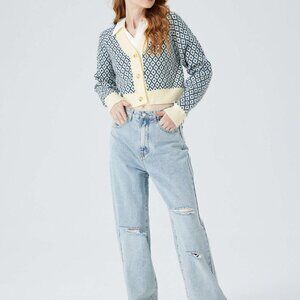 Cider Print Cream Blue Button Up Cardigan XL In like new condition