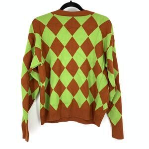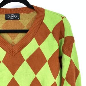 Cider Pullover V-Neck Diamond Print Sweater Womens Size Medium Brown Green