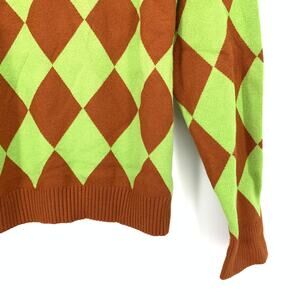 Cider Pullover Crew Neck Diamond Print Sweater Womens Size Medium Brown Green