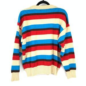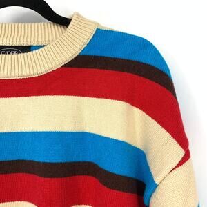 Cider Pullover Crew Neck Striped Sweater Womens Size Medium Cream Red Blue