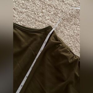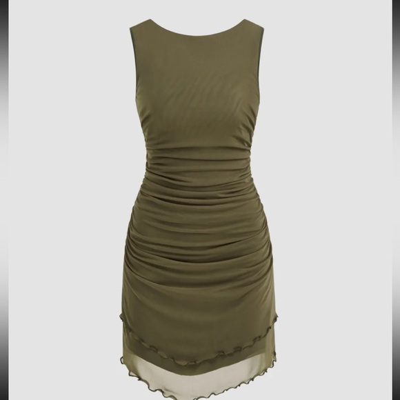 Cider ROUND NECK RUCHED BACKLESS SOLID MINI DRESS (Large)