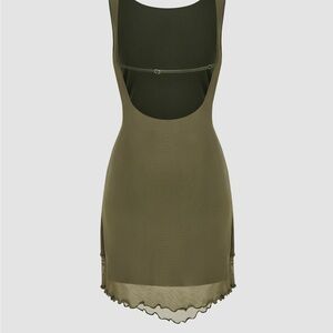 Cider ROUND NECK RUCHED BACKLESS SOLID MINI DRESS