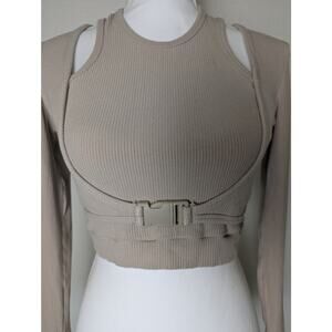 Cider Ribbed Buckle Long Sleeve Beige Crop Top Women Size M Avant Garde