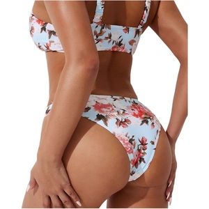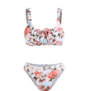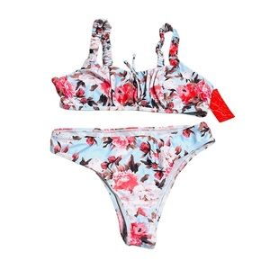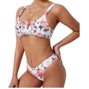 Cider Romantic Tie Front Floral Bikini Sz Small Blue Coral