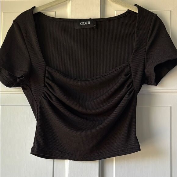 Elevate your style with the Cider Black Ribbed Crop Top. Perfect for any occasion, this top offers a flattering fit and a chic look. Pre-owned in excellent condition