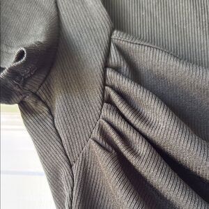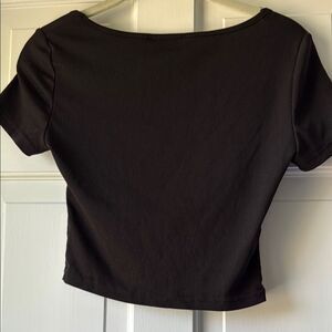 Cider Ruched Square Neck Black Ribbed Knit Crop Top Small Sexy Cropped