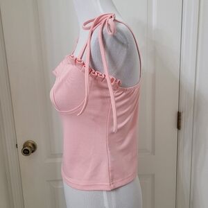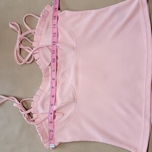 Cider Size L Baby Pink Solid Ruffle Corset Tank Top, Like New Condition. No Holes, Rips, Stains or Snags. Ruffled Trim. Tie Shoulder Straps. Please refer to measurements in photos to ensure proper fit. Shown on size 4-6 mannequin. 95% polyester 5% spandex
