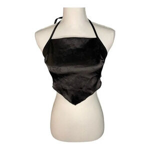Cider Size Small Black Open Back Silky Tie‎ Up Bandana Crop Top