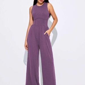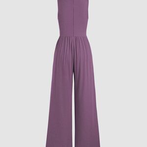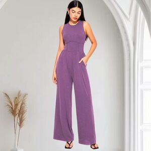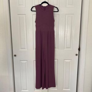 Cider Soft Purple Ribbed Solid Sleeveless Wide Leg Flare Elegant Jumpsuit M