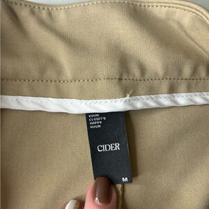 Elevate your wardrobe with these stylish Cider Solid Stitch Straight Leg Trousers in Kacki color. These dress pants are perfect for any occasion and feature a zip and button closure for a secure fit. The size is medium (see waist measurement in photo). The solid pattern and straight leg style make these pants a versatile addition to any outfit. The Cider brand is known for its quality and durability, making these pants a great investment for any fashion-forward woman. Whether you're dressing up for a formal event or adding a touch of sophistication to your everyday look, these pants are sure to become a staple in your wardrobe. They are pre-owned, but in excellent condition!