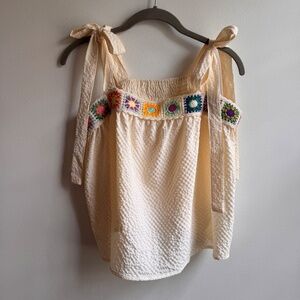 Cider Square‑Neck Bowknot Cami Large • Fast Chicago Shipping • Cottagecore