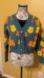 Charming teal cardigan adorned with bright yellow and orange flowers. Ideal for adding a pop of color.