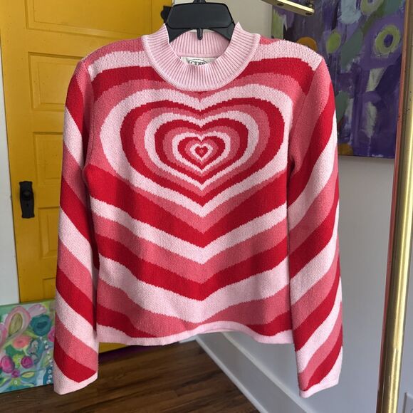 Cider Thick Soft Heart Sweater In Shades Of Pink Women’s M Cozy Y2K