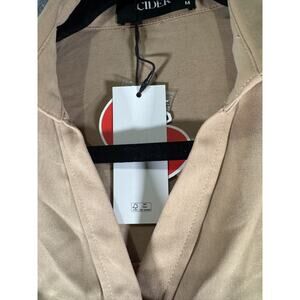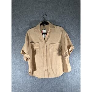 Cider Top Women Medium Beige Short Sleeve Cropped Button Front Staple Essential